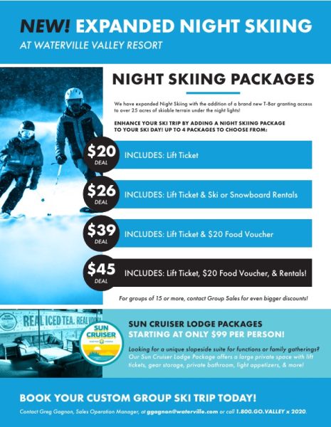 Looking for a fun, affordable winter escape? Our members can take advantage of expanded Night Skiing at Waterville Valley Resort—and it’s better than ever! With a brand-new T-Bar now lighting up over 25 acres of skiable terrain, the mountain comes alive after sunset.